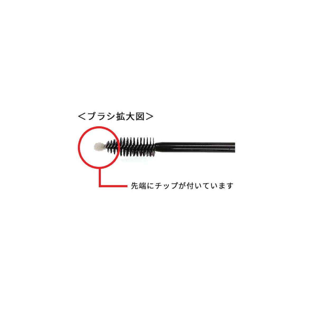 <ブラシ部分>まつ毛の根元から毛先に向けて塗布します。表と裏の両面からなじませるのがポイント。